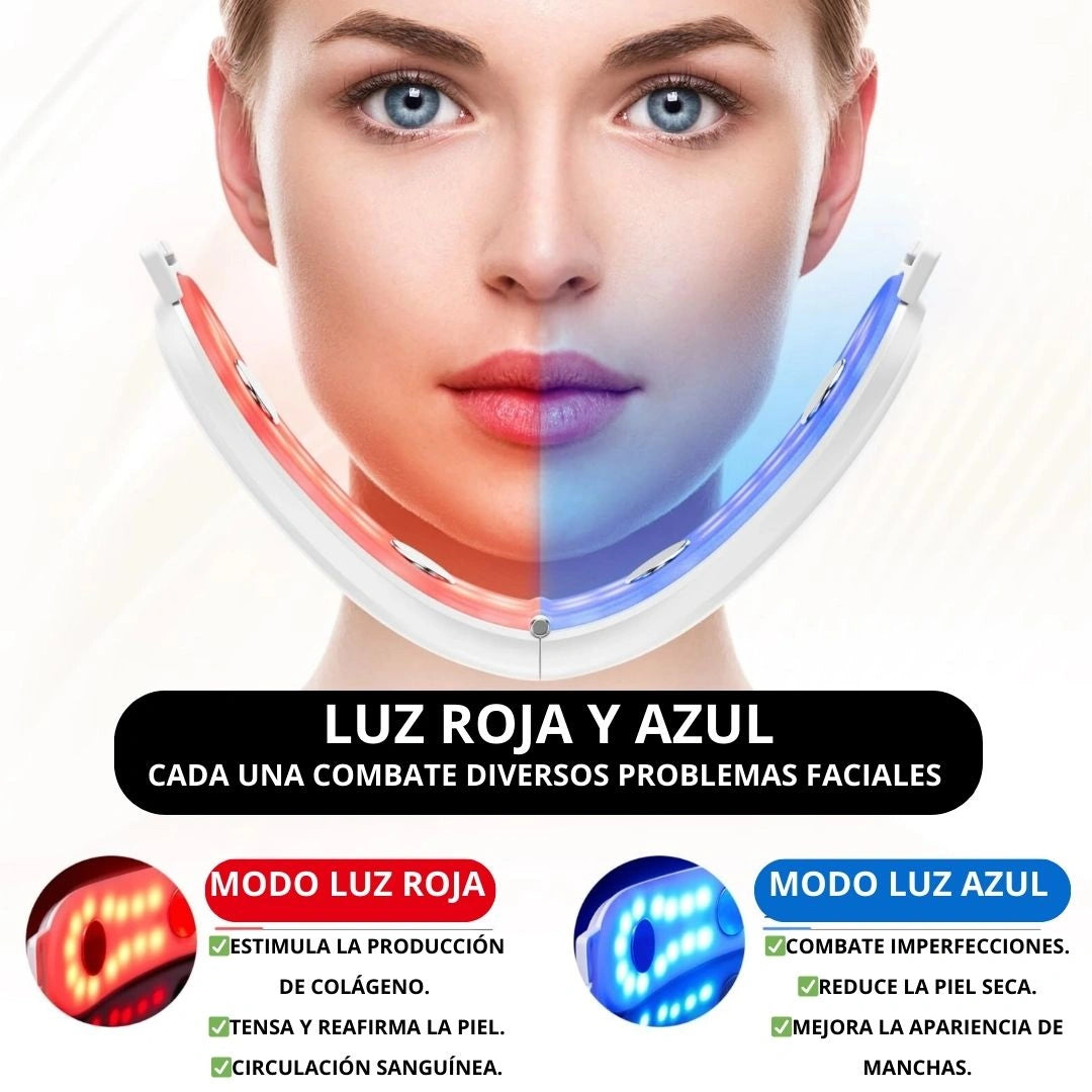 Utiliza terapia de luz roja y azul, junto con tecnología EMS, para rejuvenecer la piel. La luz azul combate la piel seca y las manchas, mientras que la luz roja mejora la producción de colágeno y tensa la piel.