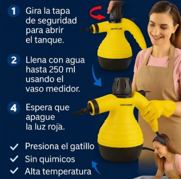 ✅ Con el Limpiador a Vapor Multiusos usas solo agua: seguro, potente y ecológico.