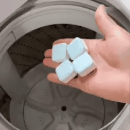 1️⃣Coloca una pastilla en el tambor vacío de la lavadora.